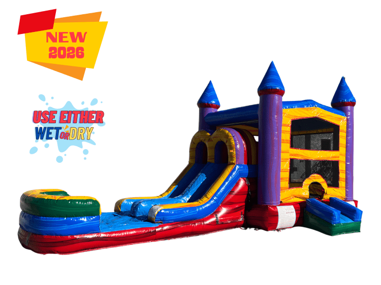 Designed with a timeless royal color scheme, this inflatable is perfect for birthday parties, school events, church gatherings, and backyard celebrations. The wet/dry feature allows it to be used with water during hot summer days or dry for year-round entertainment, making it a versatile favorite for any season.